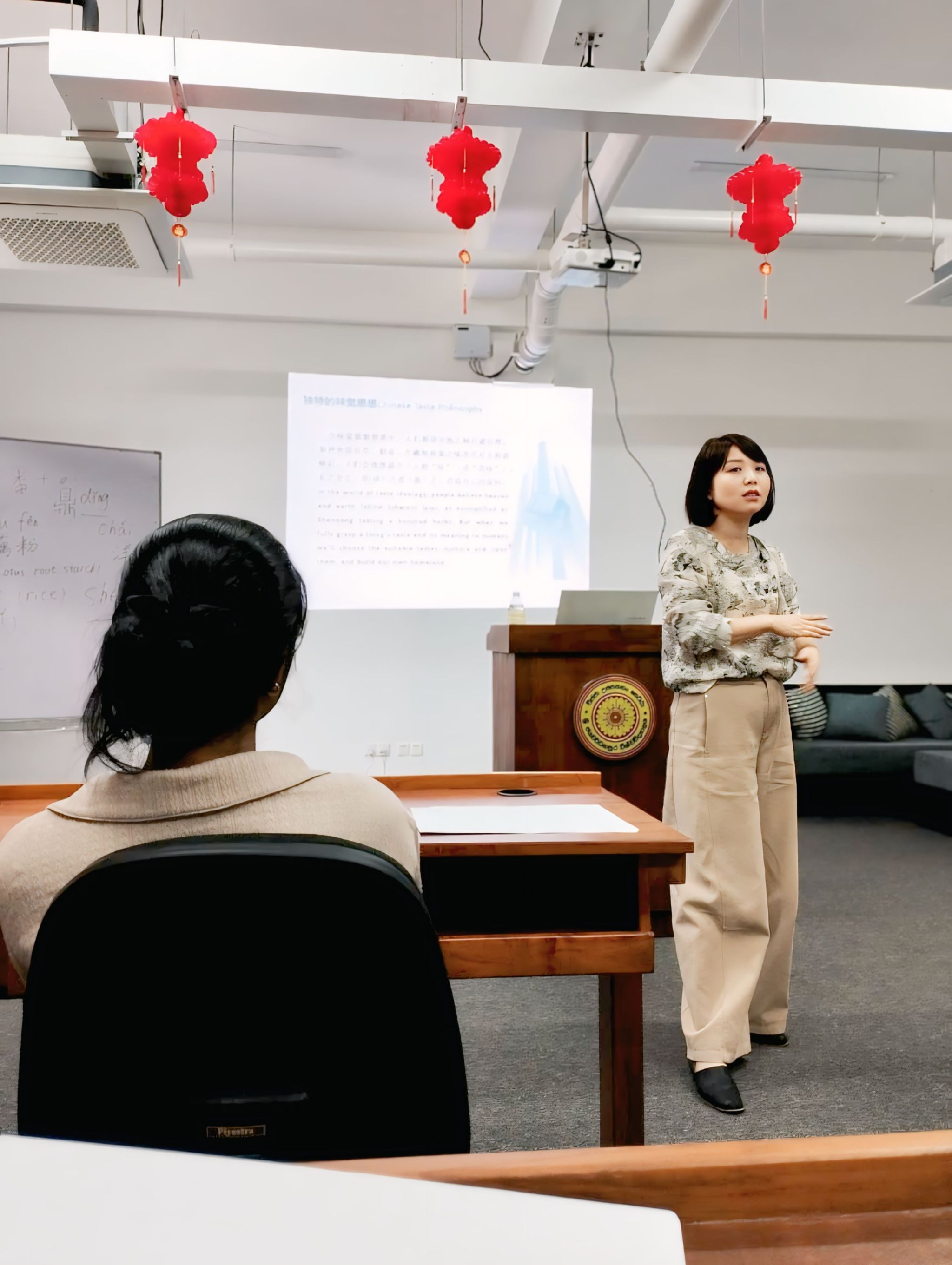 交流期间,王蓓、胡恒老师结合自身研究领域,为斯方师生开展6次专题学术讲座,讲座主要围绕“中国电影鉴赏”“中国语言文字史”“中国语言文化”“中国经济与对外贸易”“汉语口语交际”等方面展开,深入讨论了当代中国热点的艺术电影、汉字字体的发展,中国独特的味觉思想、中国经济对外贸易交流的历程,旅游口语交际的方法与技巧。讲座互动环节,中斯师生积极提问、热烈研讨,就跨文化交流中的难点问题、汉语学习中的困惑等深入交流,增进了同学们对中国的了解,厚植了国际理解与合作共赢的理念,为后续学术合作搭建了良好的沟通平台。