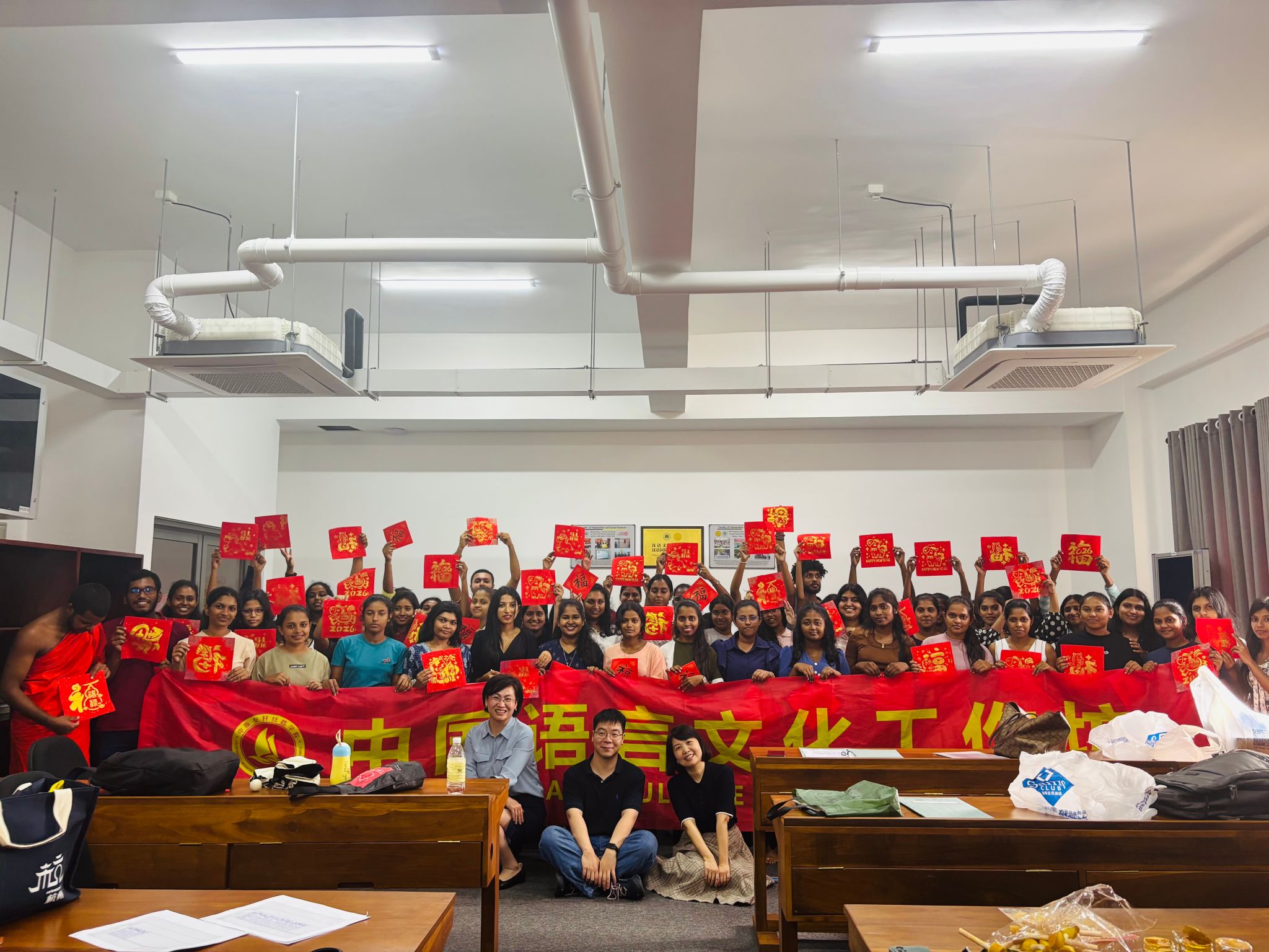文化如水,静流深潜;教育似桥,横跨山海。活动中学生们围坐于红纸、墨砚之间,亲手剪出倒“福”、拓印年画、写出新春的祝福,文化不再是书本上的抽象概念,而是可以自由触及的墨香、弧线与朱砂印。师生之间密集的互动,拉近了彼此的情感距离,激发了同学们对中国文化的兴趣,活动最终在同学们的成果展示和新年祝福声中圆满落幕。临别前,贾普拉大学的校长帕特马拉尔・马纳吉教授高度评价此次工作坊,并对两位老师表示感谢。